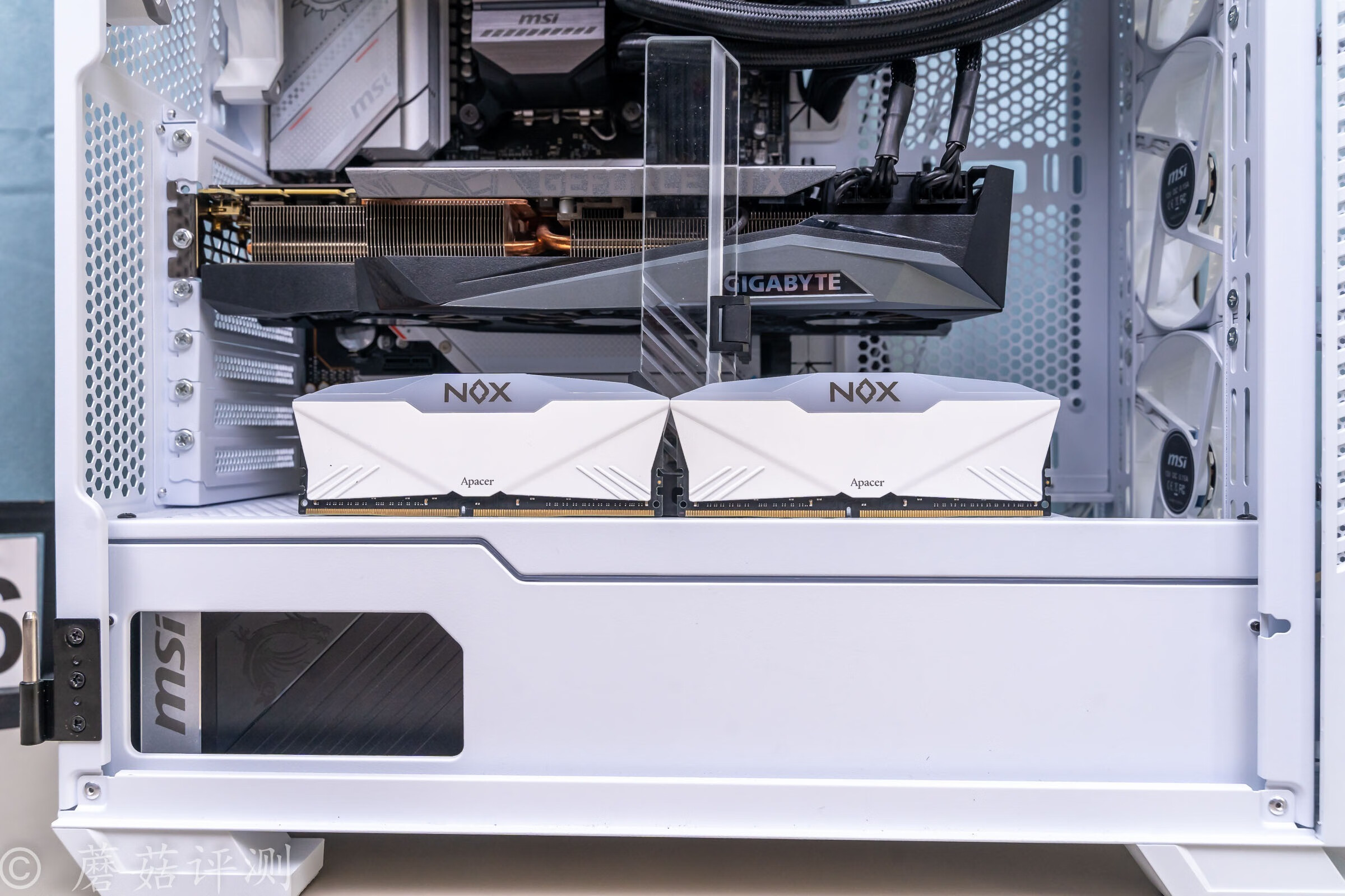 ▼内存顶部的RGB灯带体积很大,中间还有NOX和宇瞻的LOGO。