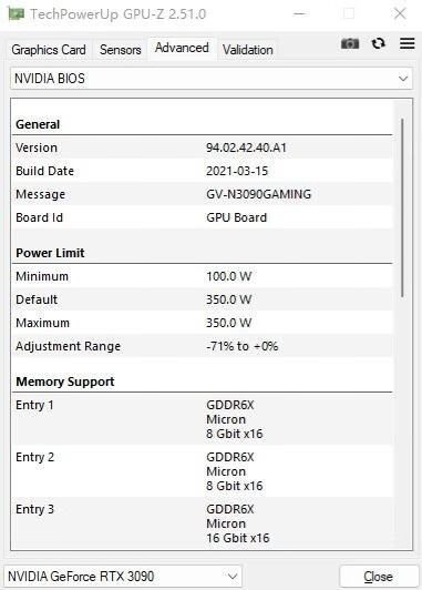 ▼简单看下显卡BIOS的功耗,很克制,默认功耗和最大功耗都是350W。