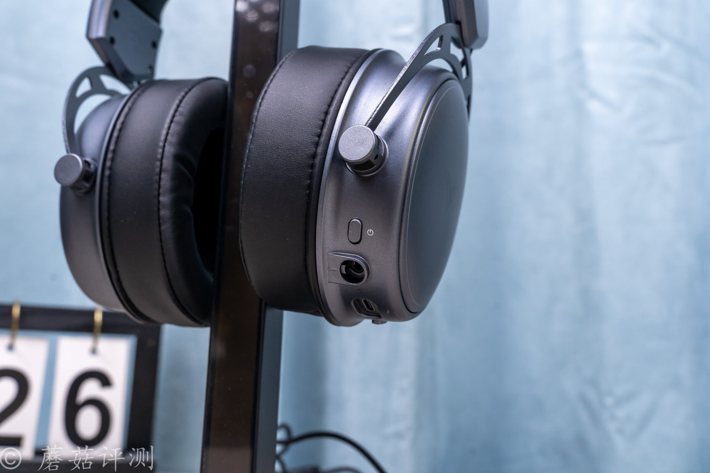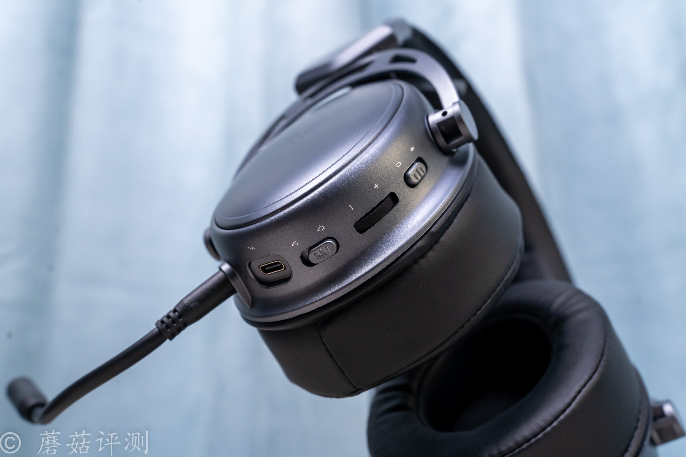 ▼耳机的各种接口和按钮都集中在了左侧耳机单元的底部,有充电的Type-C口、灯效开关、音量旋钮和耳机连接模式选择,并且不同按钮的位置、形状都相差很大,日常完全可以盲操。