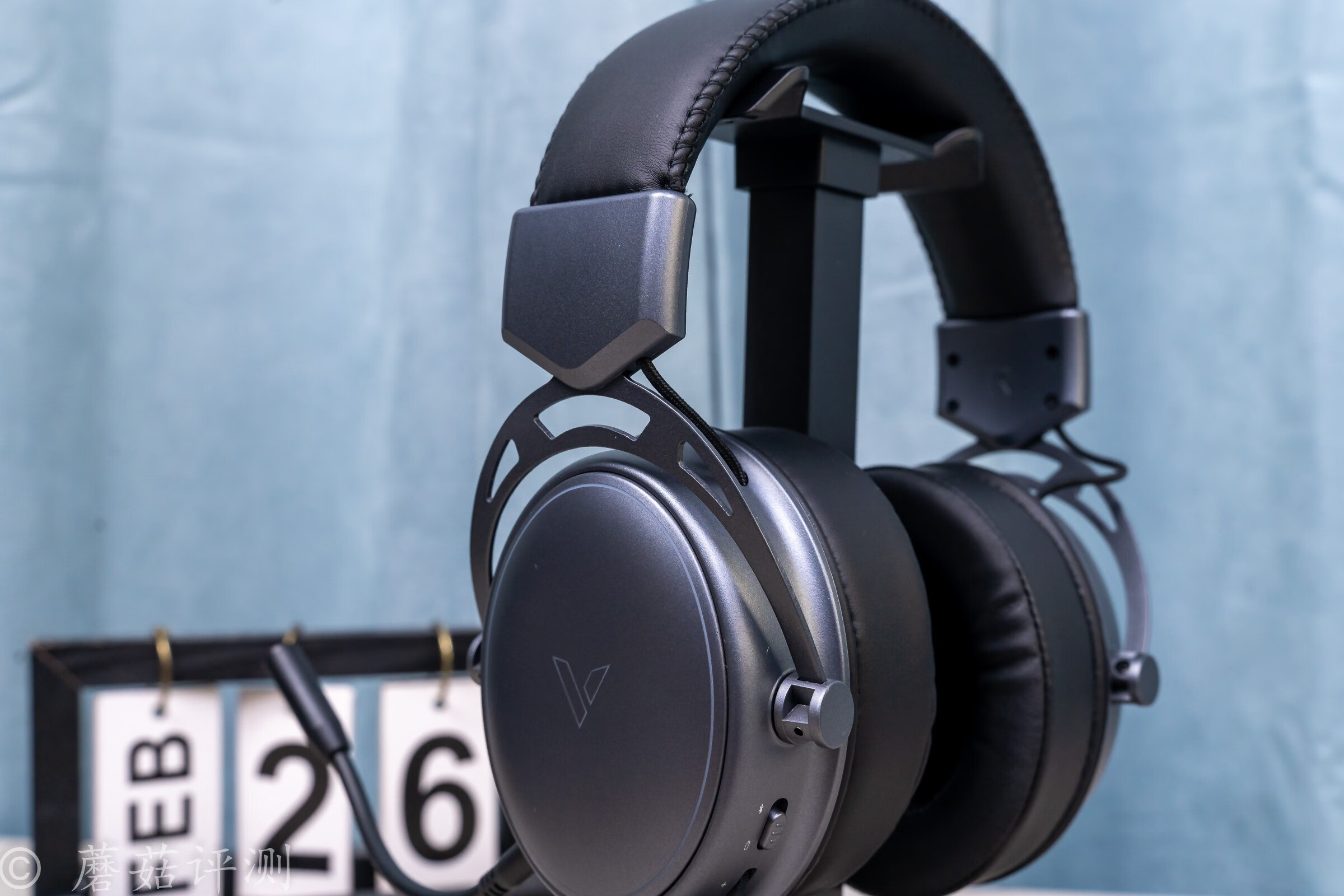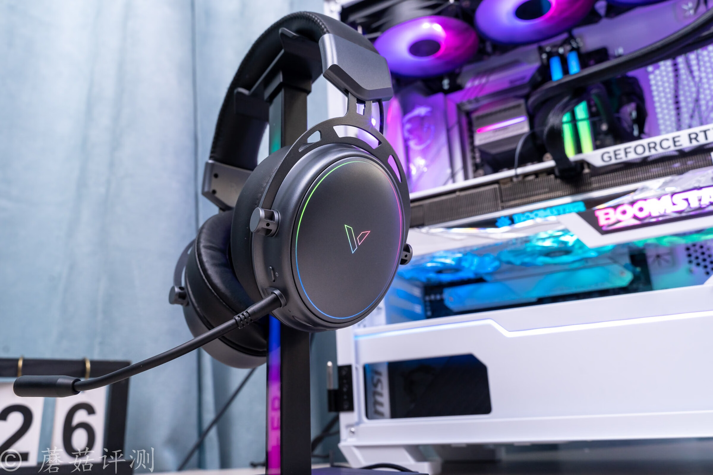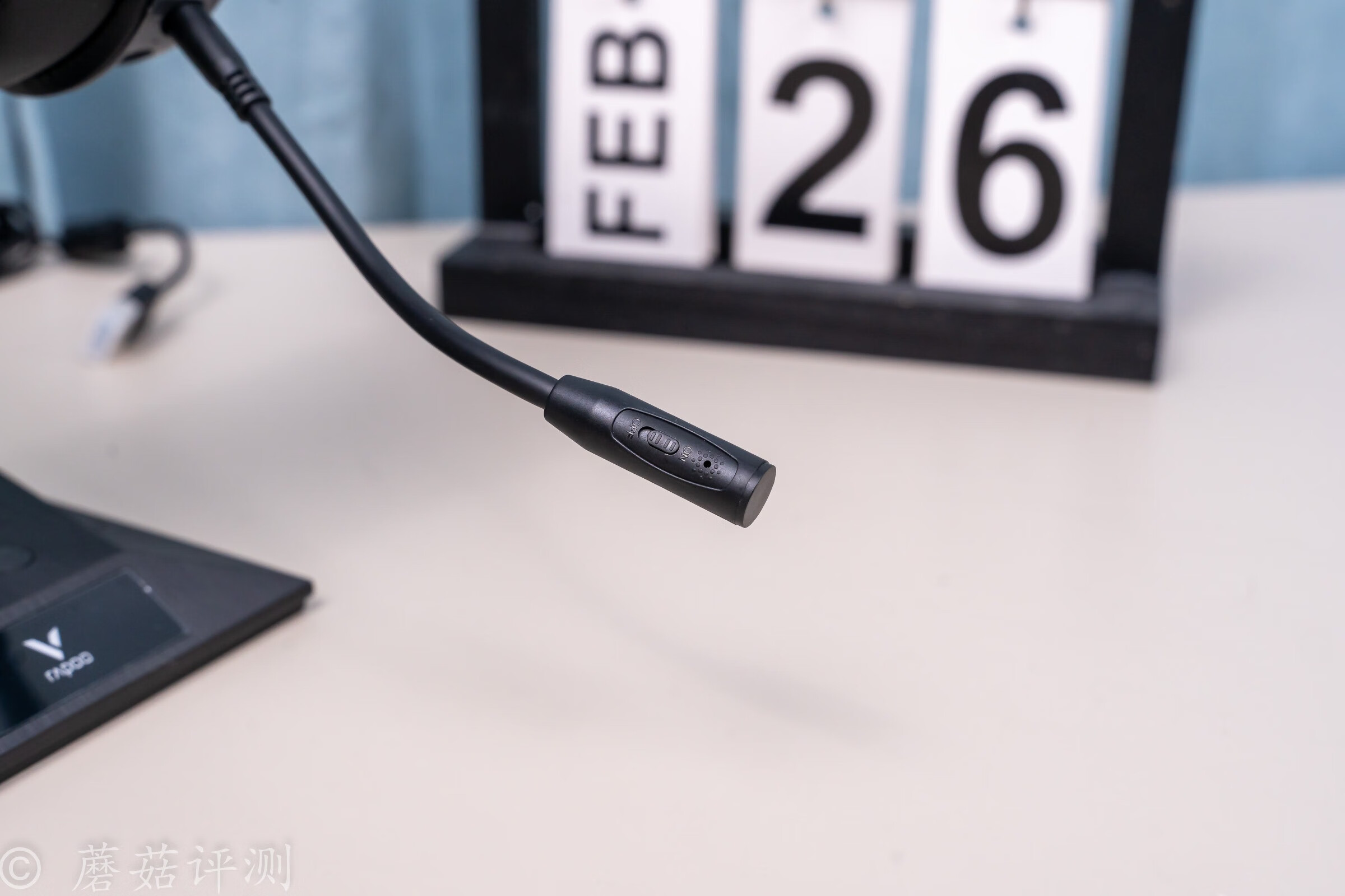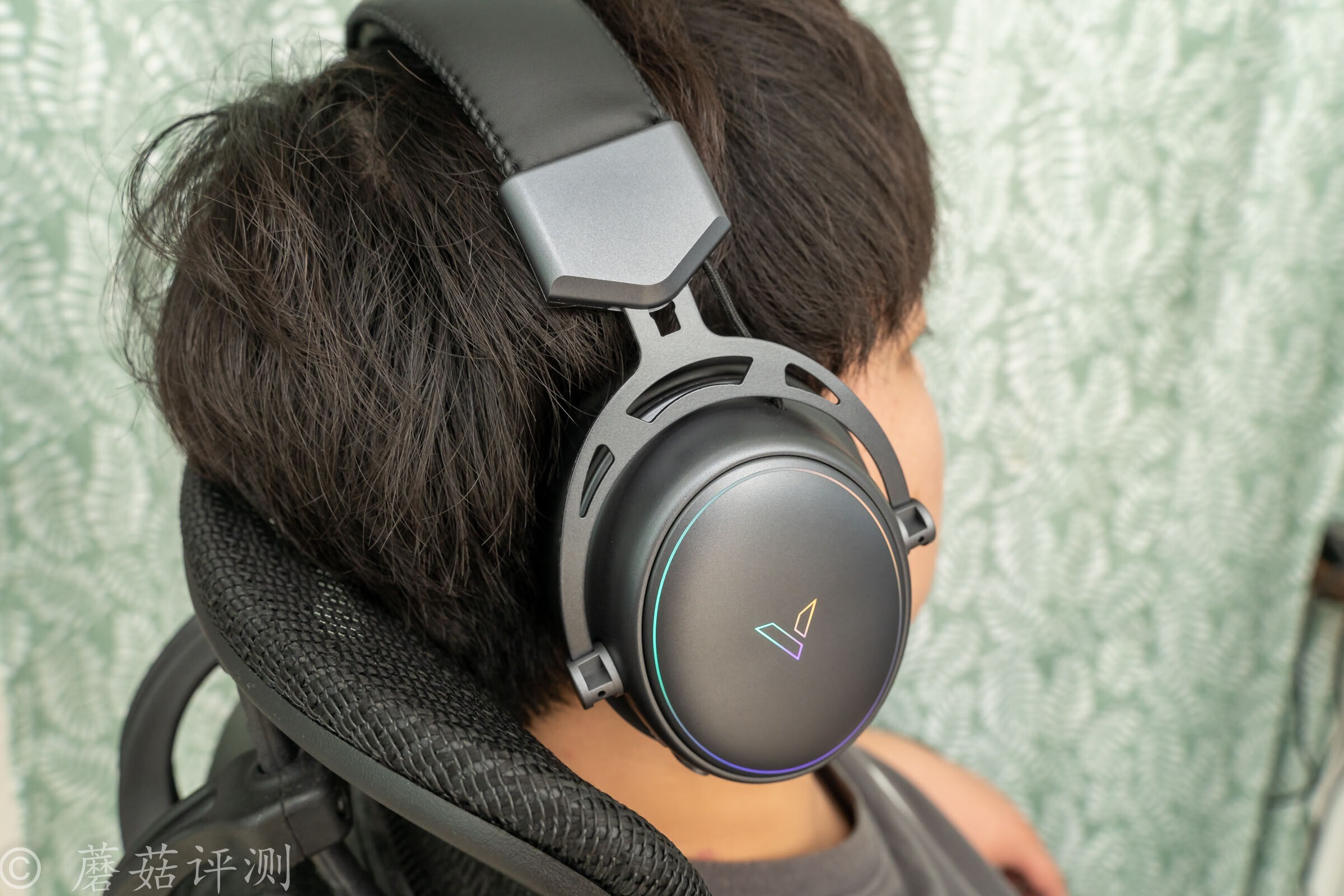 ▼耳机单元的侧面也有漂亮的RGB灯效,中间的雷柏LOGO部分,和四周的椭圆形灯带,效果非常不错。不过,日常自己使用的时候,蘑菇比较喜欢关上RGB灯效,从而获得更长的续航时间。
