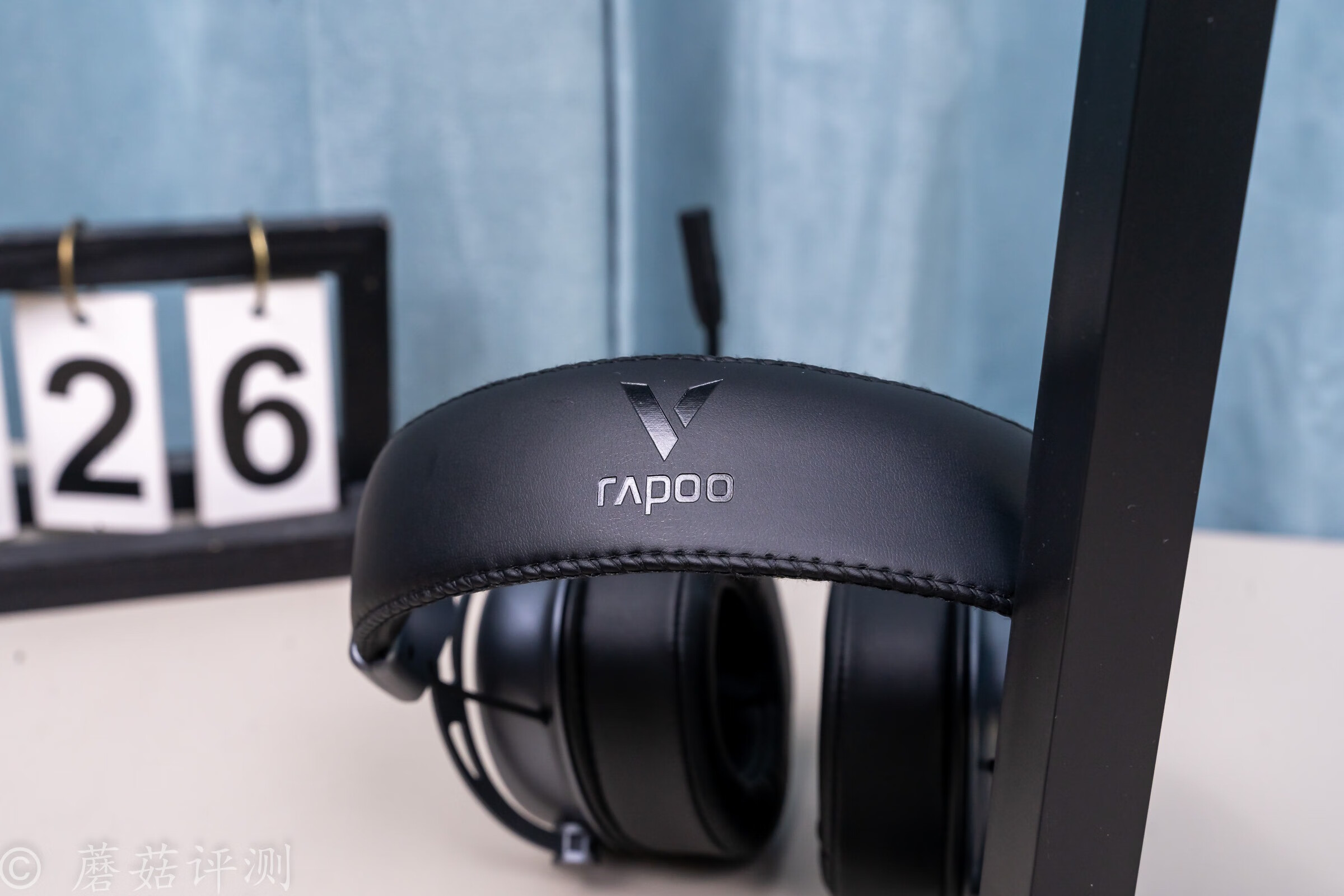 ▼耳机头梁部分,外面有完整的皮质包裹,顶部的中间印有雷柏的LOGO。