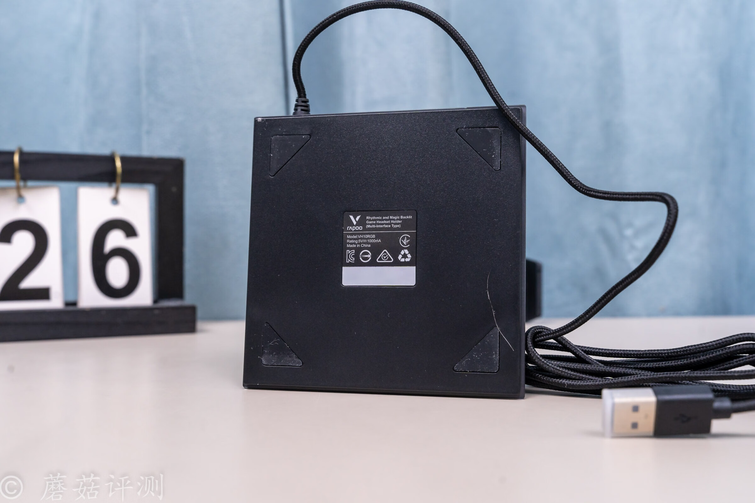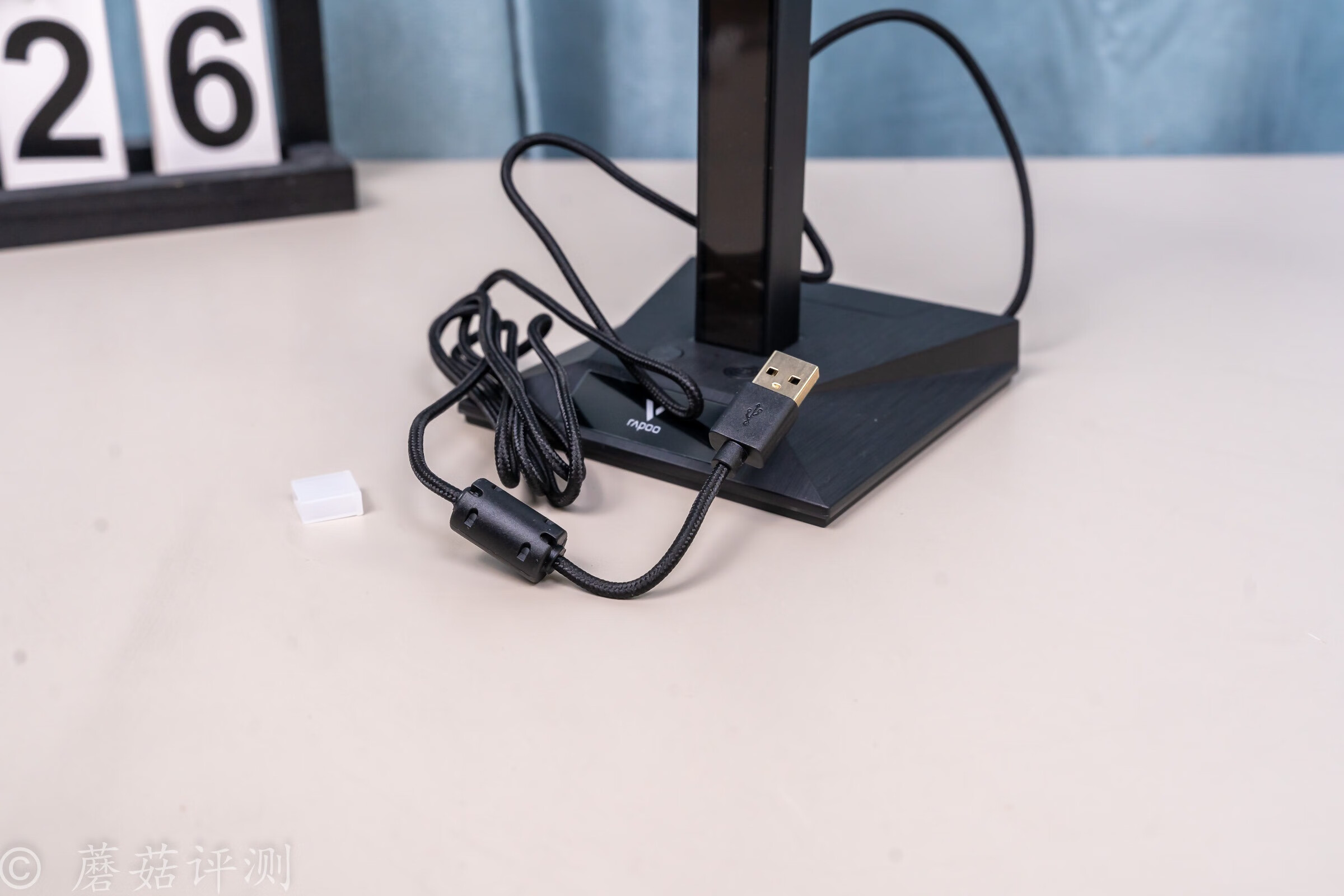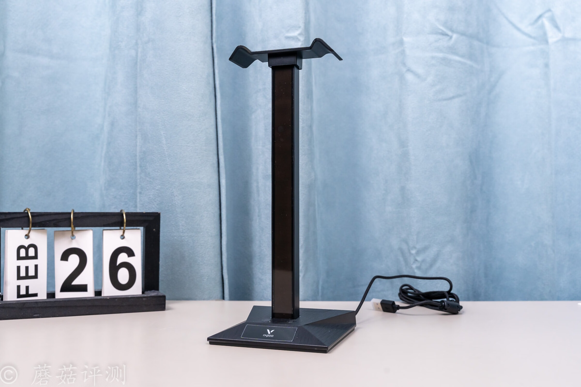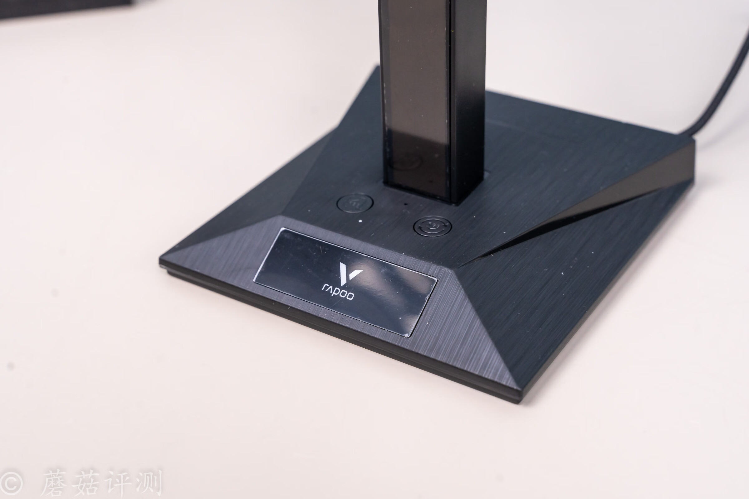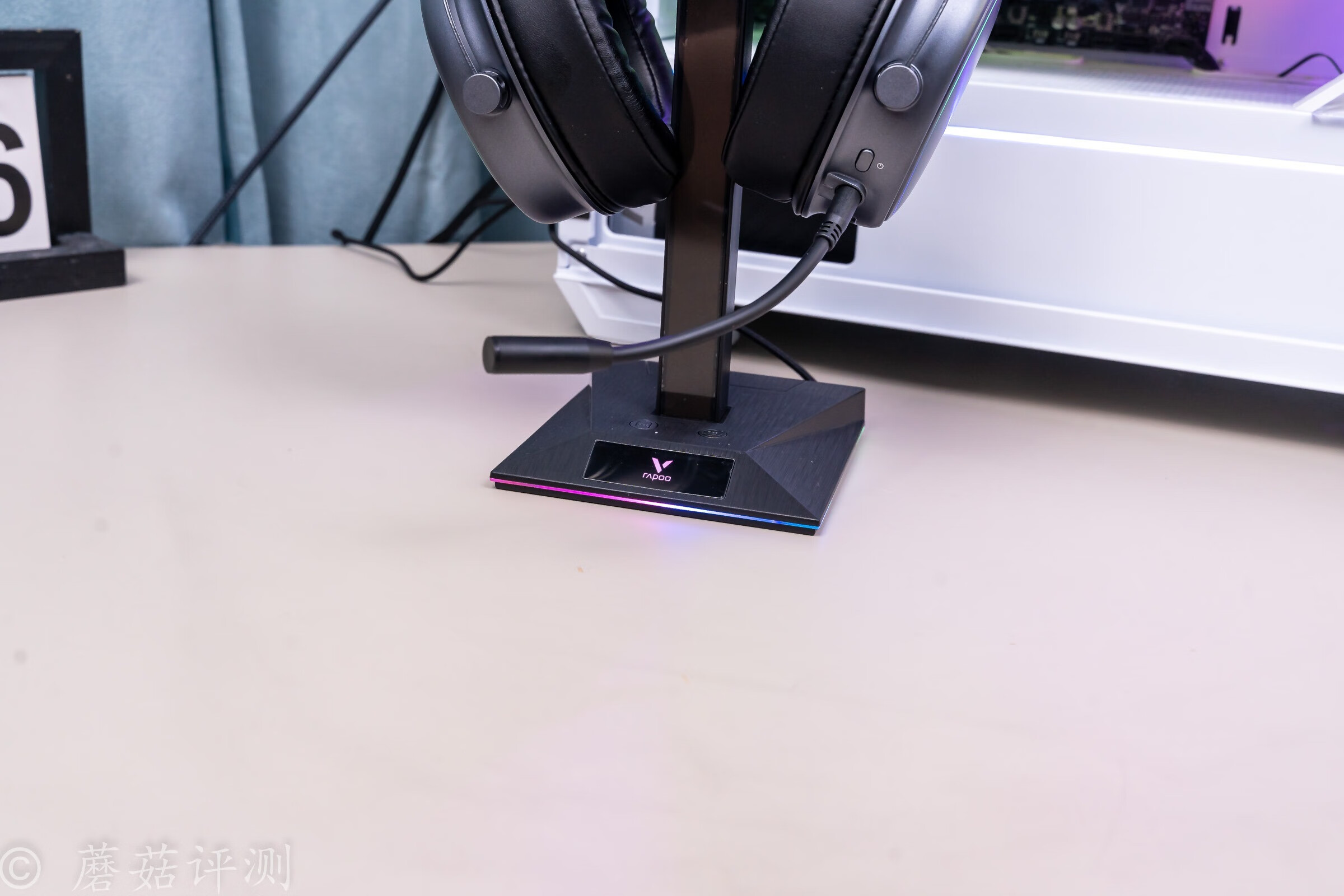 ▼耳机支架的底座部分,前面的雷柏LOGO灯效也很漂亮。