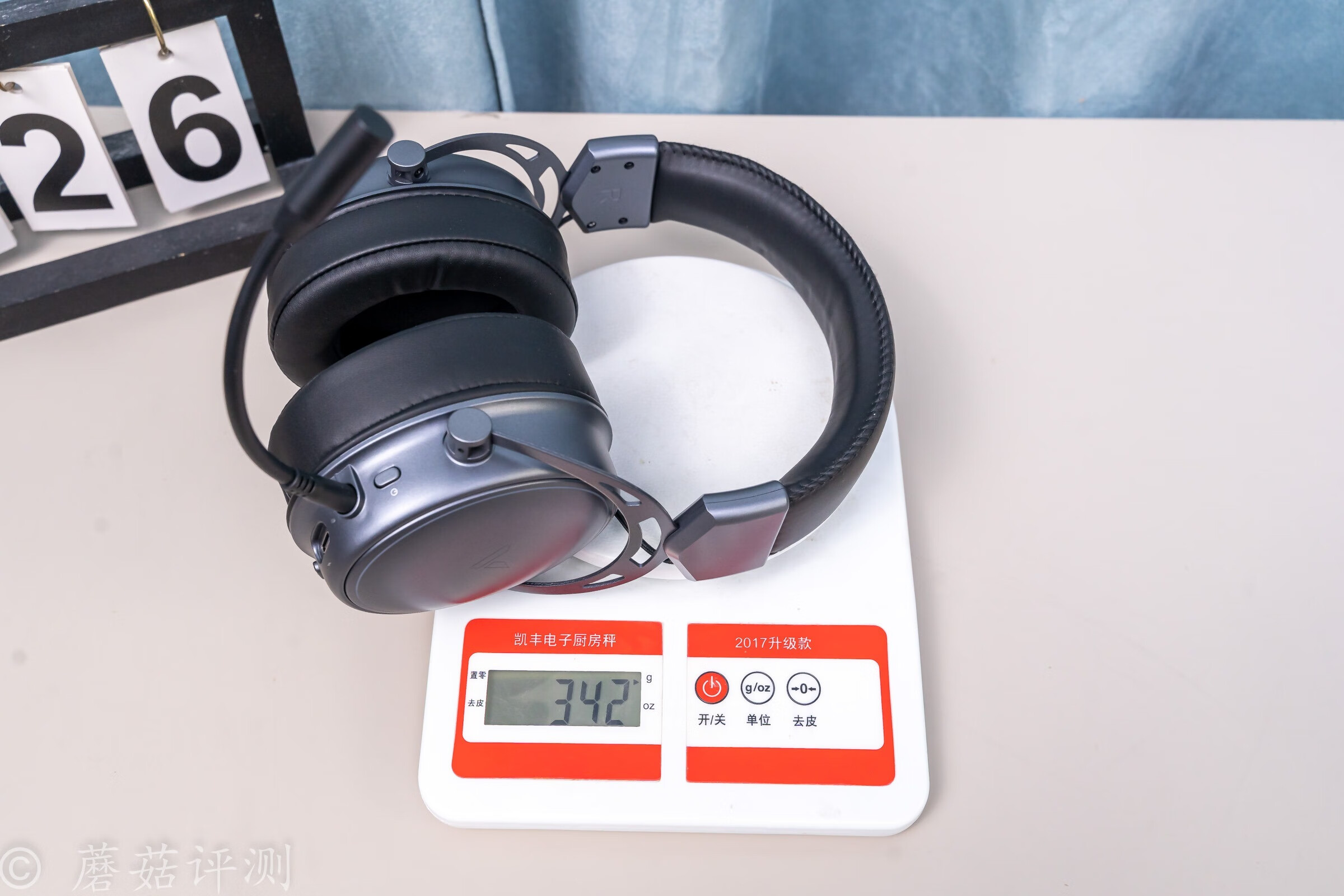 ▼最后简单的称一下耳机的重量,整体重量在342g左右,还不错。