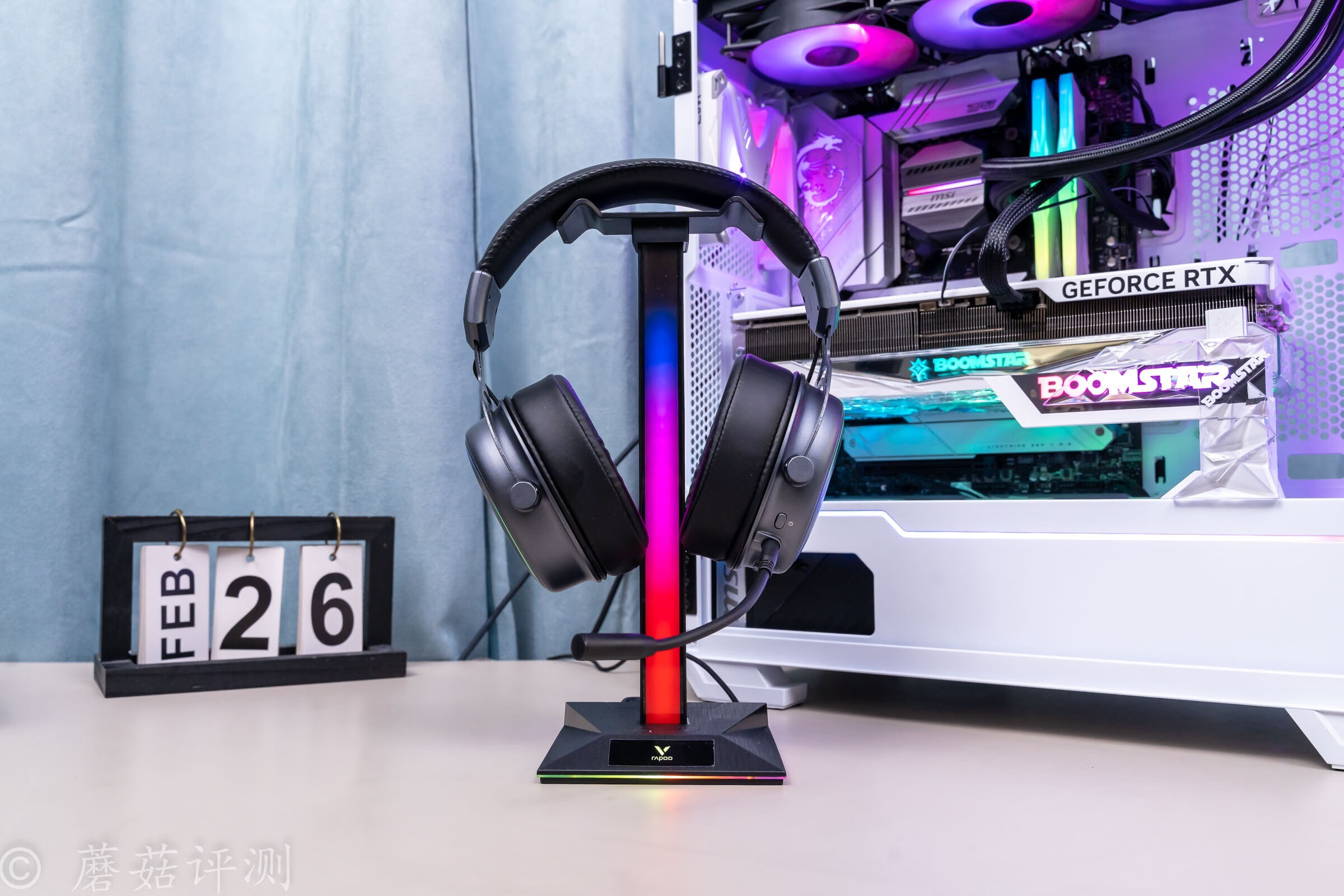 ▼耳机支架默认就是拾音RGB灯效,效果非常不错,并且互动感十足,很有意思的。
