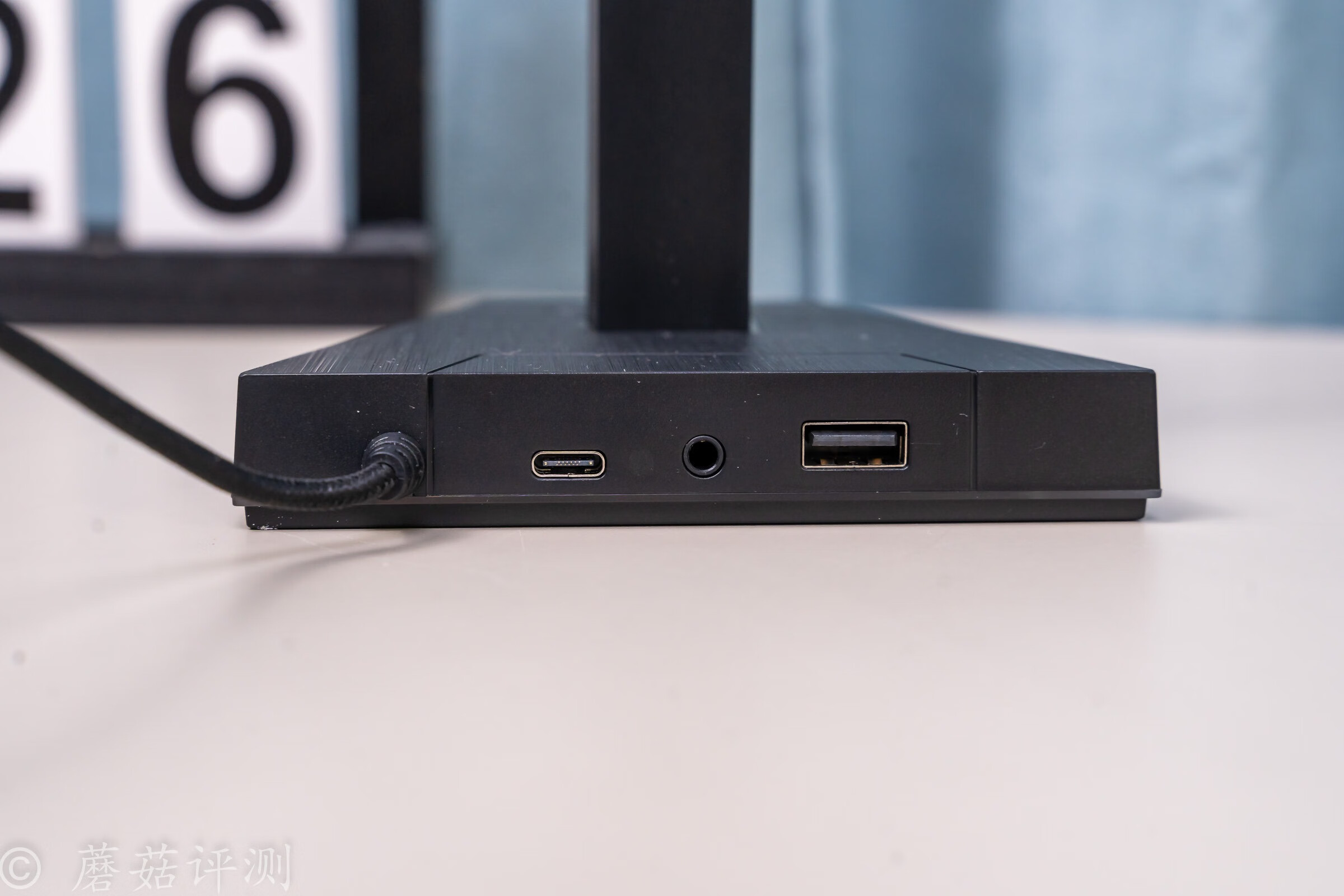 ▼耳机支架的背面,有多个接口,从左到右依次是Type-C USB2.0接口、3.5mm音频接口和Type-A USB2.0接口。这个耳机支架还兼容USB HUB,可以非常方便的拓展一些外设。