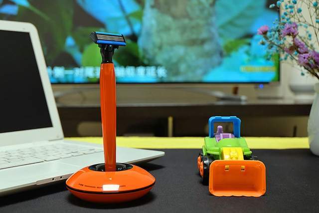 这款剃须刀采用了磁悬浮支撑技术,这个技术得益于它的形似外星飞碟的支撑底座,底座设计的非常漂亮,橙色与黑色的组合搭配,特别适合年轻人,活力四射。