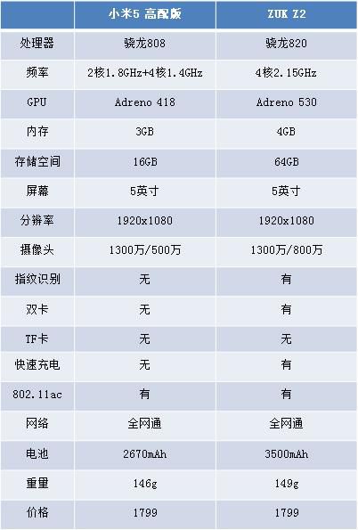 今天,我们看到锤子T2降价700,杀入1799元区间,而ZUK Z2新品上市也是1799元价位,两者本来并不是对手的对手在同一价位相遇,那就来比试一番吧。我们先看看两者的配置。