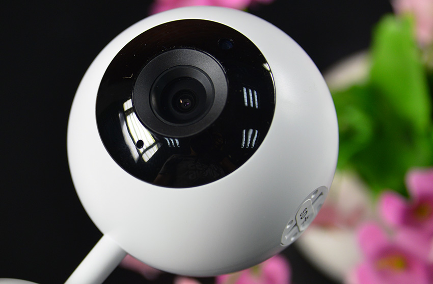 在正面,有着一枚广角摄像头,摄像清晰,取景范围广,非常适合监控使用。在摄像头的上方,有一个传感器。在摄像头的下方,则是一个麦克风,用来与手端对讲使用。