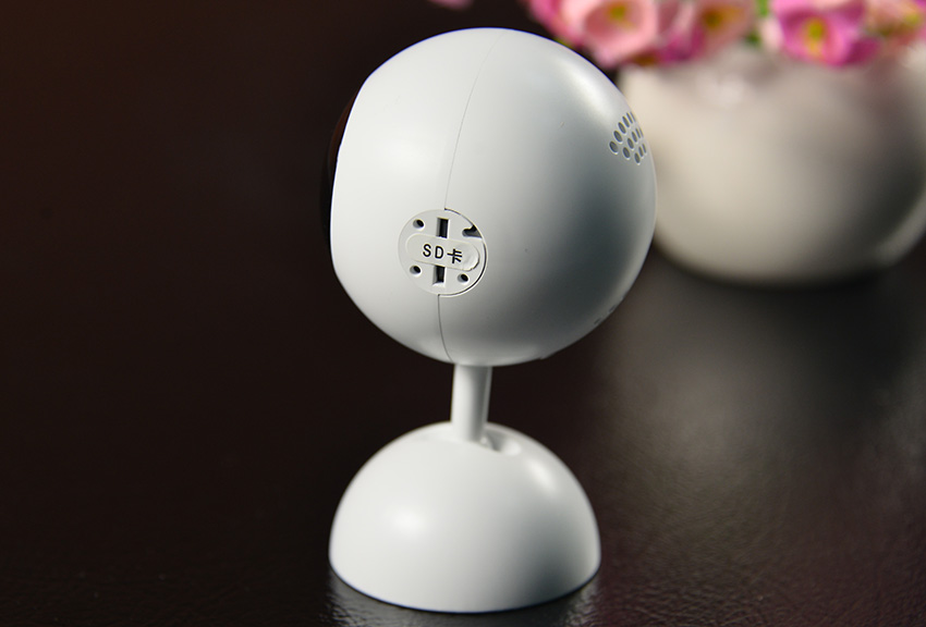 打开包装,就可以看到鹏博士智能摄像头了,圆球体的摄像头被一个小支脚撑着,猛一看就像一个可爱的小机器人,非常萌。顶部的摄像头就像一个大大的眼球,让人想起“大眼萌”这个名字。