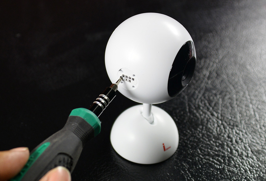 尽管鹏博士智能摄像头外壳上贴了标签“撕毁保修无效”,但作为测评师,还是要认真的剖析一下这款摄像头的内部结构的。左右两枚螺丝拧下来之后,就可以打开了。