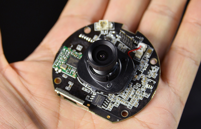 拆开后就能发现,鹏博士智能摄像头不同于其他摄像头的是,内部的电路结构全部采用了插针设计,并不是直接焊死的,这对于组件的更换非常有利,一旦出现故障,只需要替换故障部件就可以了,极大的节约了维修成本。