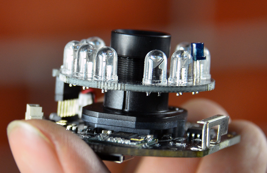 不得不佩服鹏博士的精良做工,不但可以看出电路板上精细的焊点做工,那些插针设计更是凸显鹏博士的精妙设计。整个摄像头的内部电路,就像一个组装式的变形金刚,任意可以分离组合,拆装均十分简单。