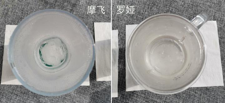 经过默认40秒的搅冰战后,我们可以清晰看到,摩飞榨汁杯还有一些碎冰块,而罗娅梅森杯只有一些浮冰渣,完成度出色。