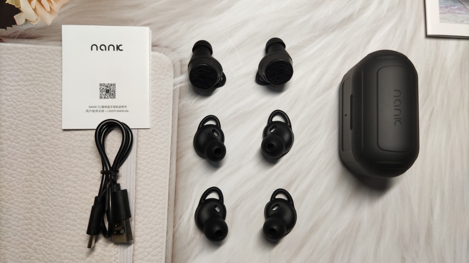 拆开耳机配件的包装盒可以看到:南卡T2耳机的配件还是比较简单的,包括一根Type-C充电线、额外的两对耳帽和纸质说明书。配件不算丰富,或者说因人而异,就我个人而言,够用。