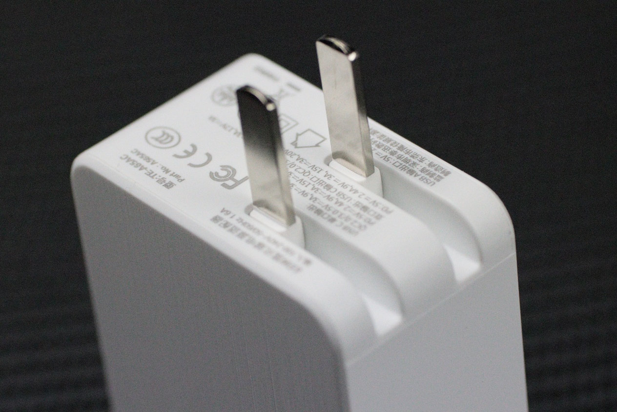 打开包装就是这款充电器的本体了,泰讯的充电器是有带数据线的版本,而我的这款是不带数据线的版本。外观看上去非常的简洁,整体是显白的颜色。充电器表面有独特的纹路中间是泰讯品牌的logo。