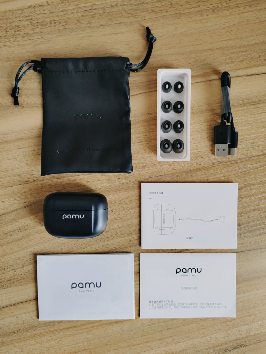 收纳袋挺令人惊喜和意外,这个价位的耳机似乎都在极力维持性价比,而能简则简,而Pamu Z1 Pro反其道而行之,附赠的收纳袋精致又实用。更让我感觉用心的是使用说明,一共有三部分,分别是:详细的使用说明书、快速使用指南、固件升级指南。对于不爱看说明书的用户来说,可以扫一眼卡片,即可掌握操作要领。