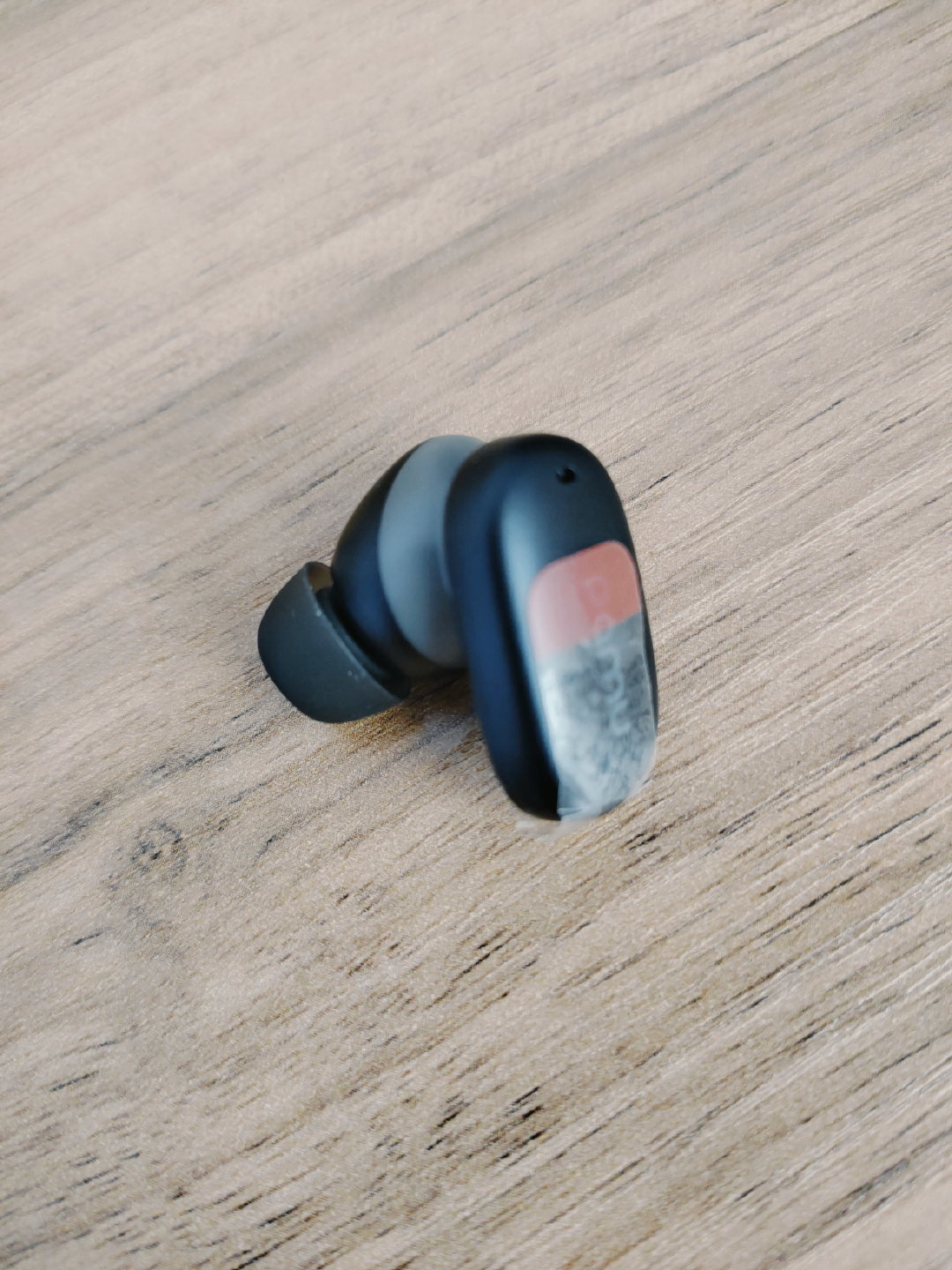 充电舱造型不方不圆,并没有什么亮眼的设计点,甚至有些平庸。不过磨砂外壳触感很好,拿在手里不会感到廉价的塑料质感。耳机小巧玲珑,重量轻盈,不会给耳朵带来负担。