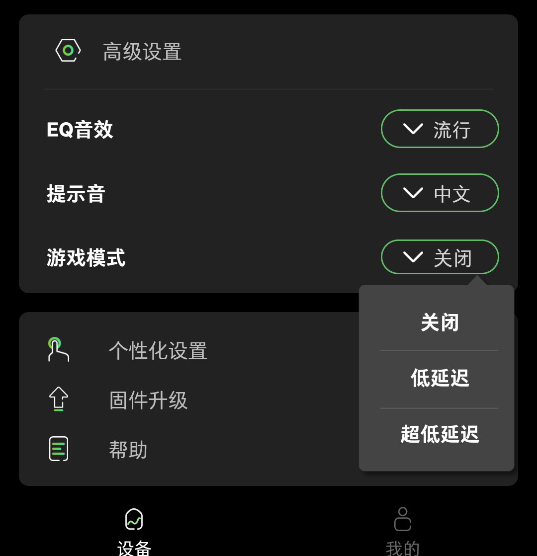 还有超低延迟的游戏模式,音画同步,尤其是玩吃鸡游戏,听声辨位,快人一步,谁用谁知道,用起来真的爽!