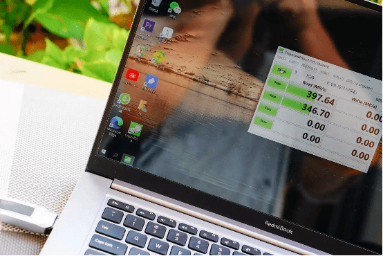 用CrystalDiskMark测得数据,读取速度:420.08 MB/s,写入速度:365.94 MB/s。