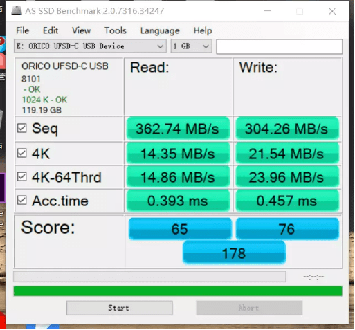 首先是UFSD-C快闪U盘存储速度,我们通过AS SSD Benchmark、CrystalDiskMark、IsMyHdOK等测试软件,我们就能看到它的真正强大之处。