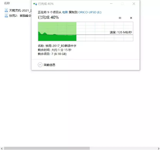 许多U盘在存储大文件过程中,都会出现掉速等现象,我们可以从CrystalDiskMark的线形存储速度状态图看出,UFSD-C快闪U盘的存储速度一直非常稳定,(写入)维持在135MB/s左右。