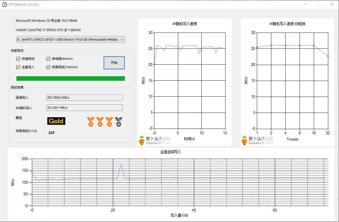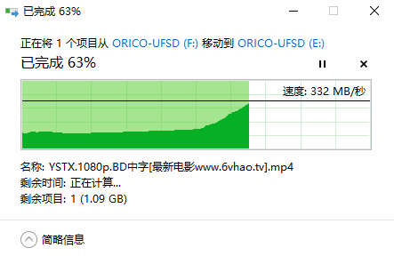 既然是存储类产品,传输速度和稳定性必然是一个测评的核心。为了验证ORICO UFSD-I快闪u盘的性能,我使用了两个平台,不同的测试软件以及正常大文件传输进行了测试。