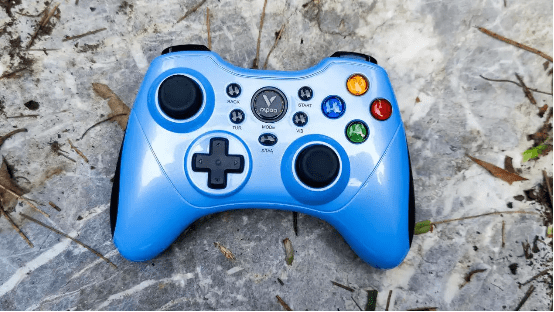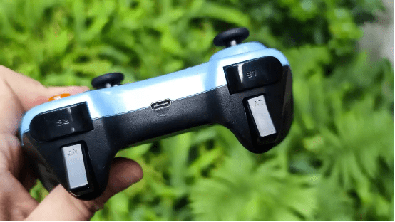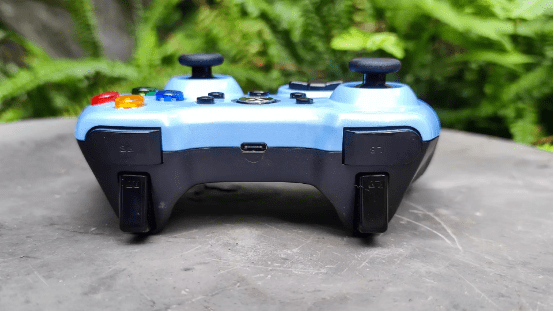 整体布局:手柄的整体布局采用了流行的PS游戏手柄布局,手柄拥有两组全向摇杆、一个“十字”键、一组“A、B、X、Y”键、左右扳机键和肩键和一组特色功能键,与普通的360手柄键位布局差不多,对于经常使用手机进行游戏的朋友们会觉得非常熟悉,上手完全不是问题。