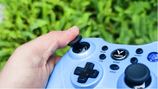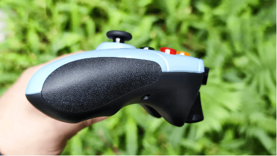 键位手感:雷柏V600S游戏手柄的键位材质决定了它拥有良好的手感。一是手柄采用了360度全向摇杆,能360度准确定位,提供0-255区间的逐级线性步进,精确而且迅速的响应;二是双内凹的磨砂纹理摇杆能与大拇指指心1:1贴合,表层磨砂纹理软胶让玩家拇指感觉得舒适;三是手柄的“十字”键同样采用了磨砂纹理软胶,提供了4触点8方位转动,顺滑而且精确;四是线性弹力扳机键同样提供0-255区间的逐级线性步进,智能识别玩家的手指按压力度。
