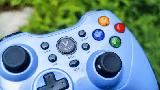 连接方面:雷柏V600S游戏手柄与我之前使用的雷柏V700键盘和雷柏V30W鼠标一样,都是使用了成熟的三种连接模式设计的产品,属于标准的三模键盘,它的连接方式包括有线、蓝牙、2.4G无线三种方式,分别对应了X(360游戏主机)、D(PC电脑主机)、A(安卓主机)三种使用的场景。通过手柄中间“Rapoo”标志的MODE指示灯可以看到手柄的切换模式。