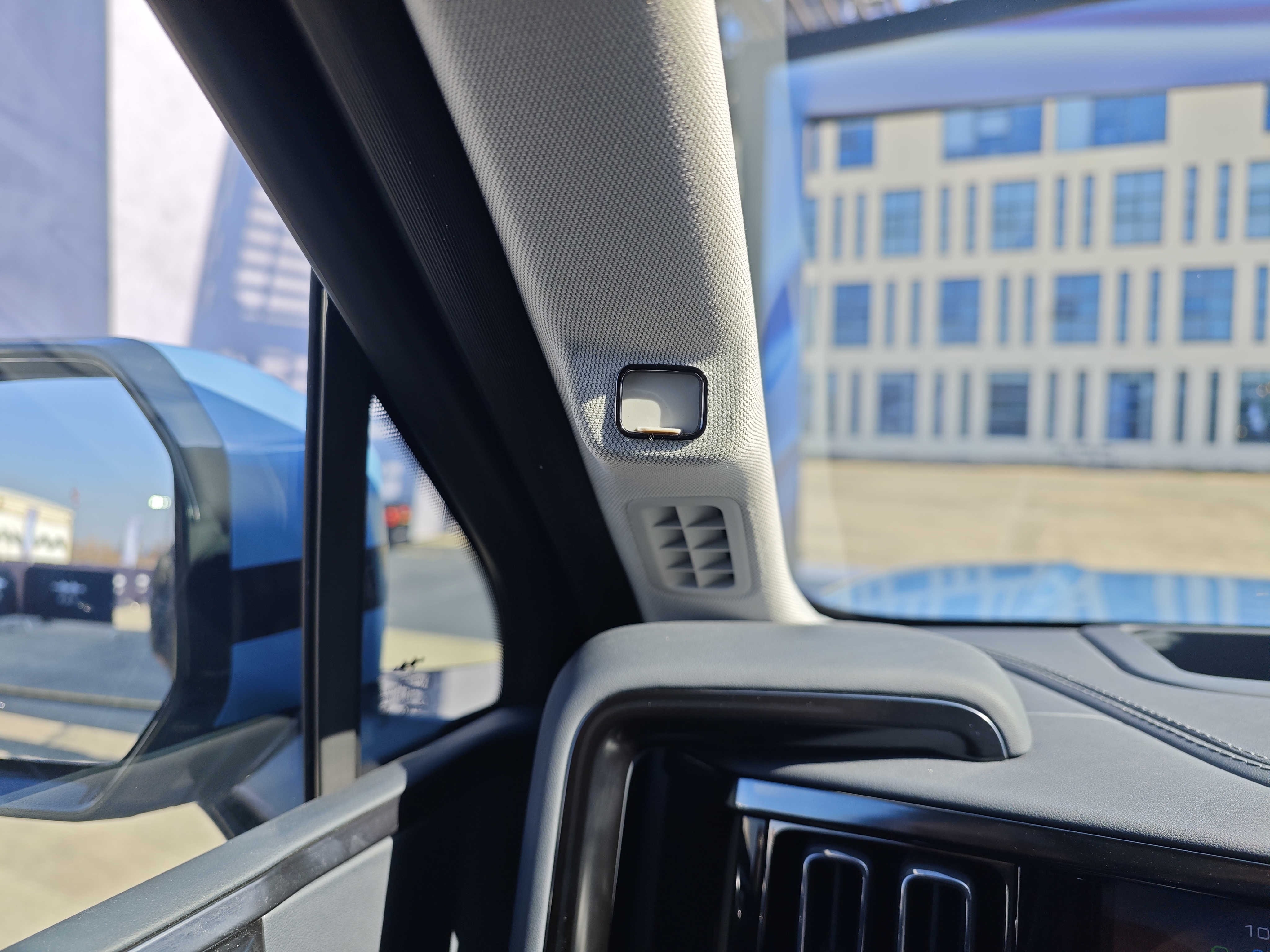 ▼车辆驾驶位前侧的A柱上,有一个摄像头盖板,大概率是用于人脸识别和疲劳检测的。