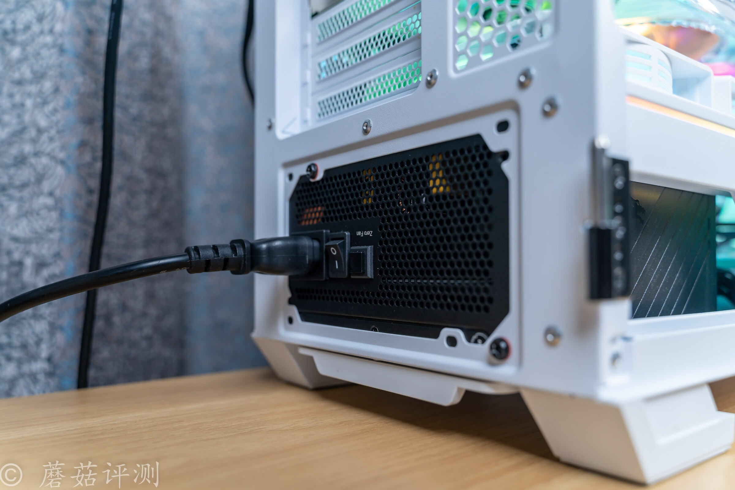 ▼电源的尾部除了电源插口和开关之外,还标配一个Zero Fan按钮,可以打开电源的静音模式,让电源的散热风扇在低负载的时候停转,有效降低电源的待机噪音,更安静。