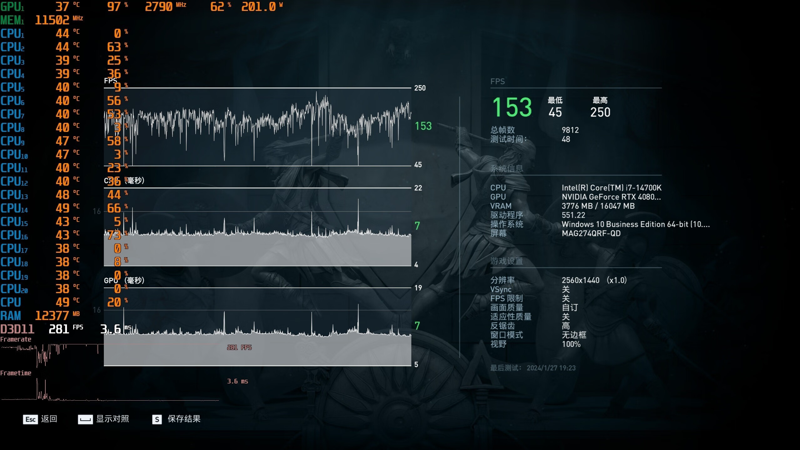 ▼最后整体的平均帧数,在153帧左右,非常流畅。