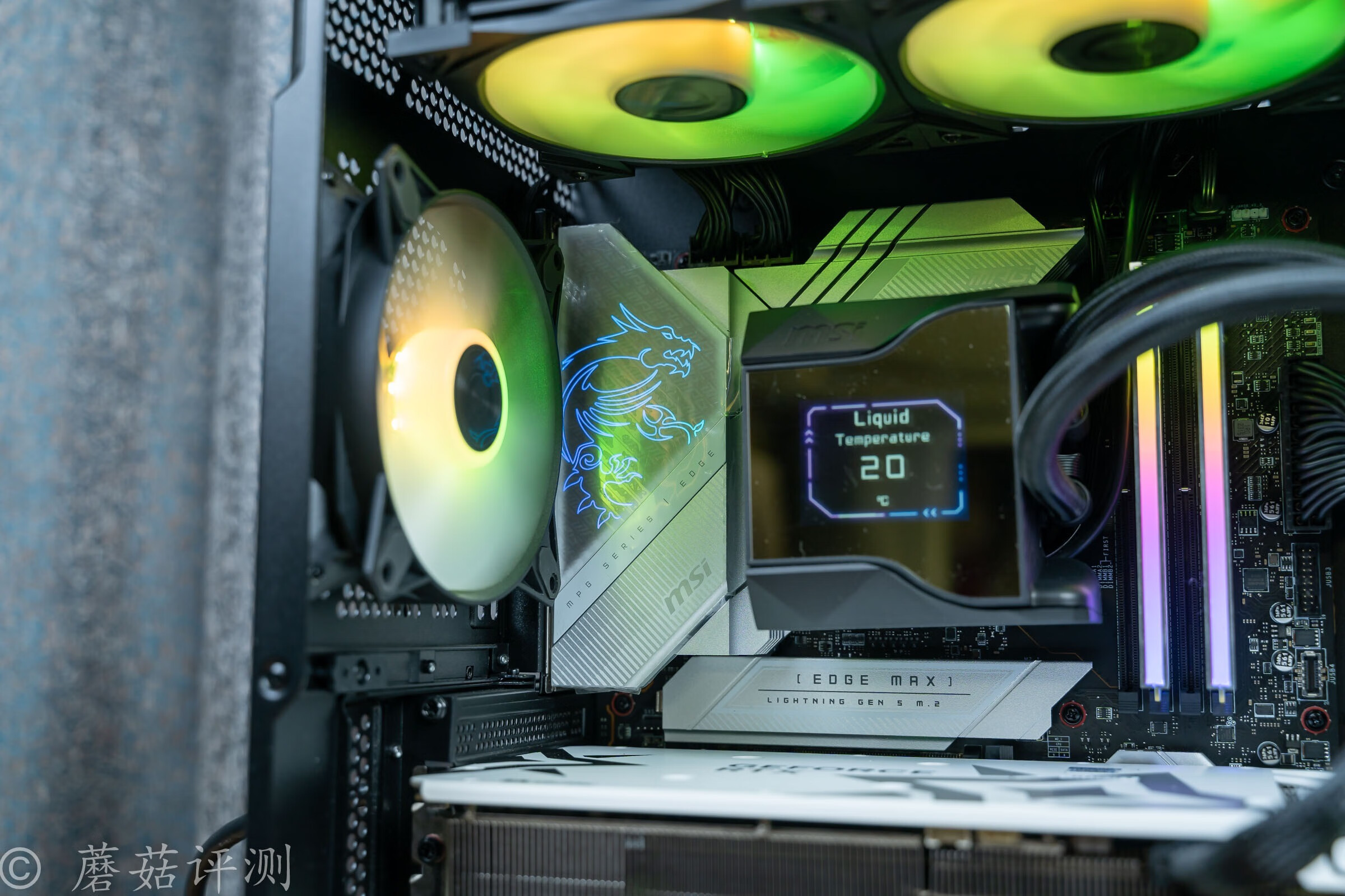 面对更高的功耗和更大的发热,微星的寒霜D360一体式水冷微微一笑,表示丝毫不在意,其采用的Asetek第七代方案散热效能提升巨大,辅以微星的刀锋六代风扇,可以轻松拿捏14700K处理器。