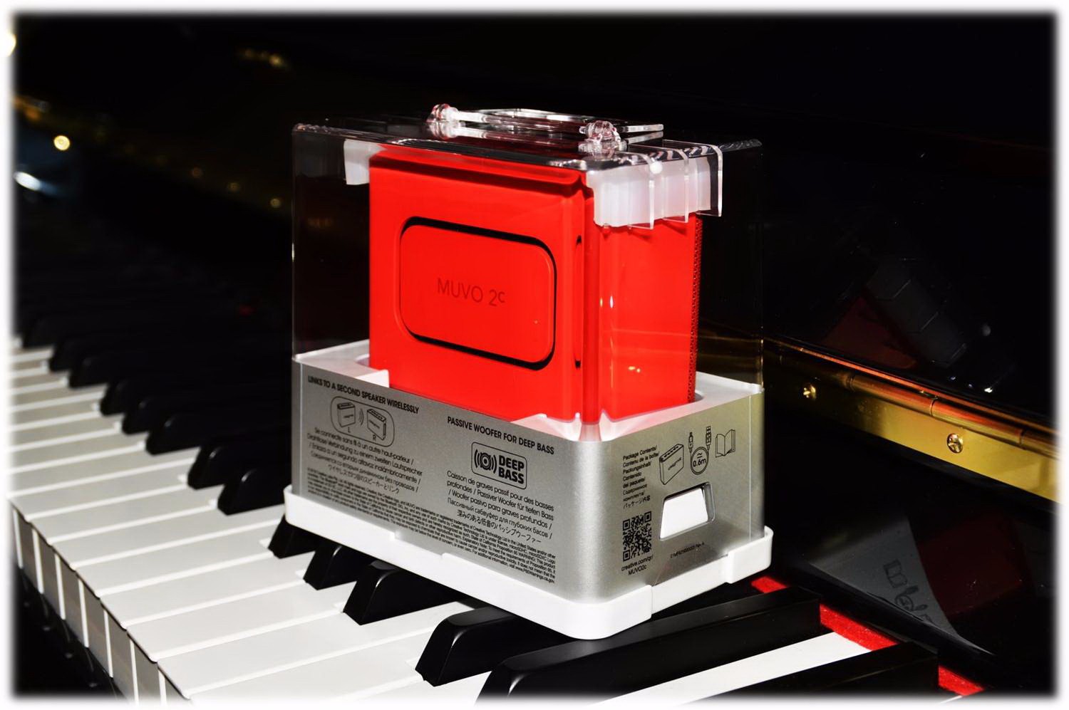 与市面上其它品牌的塑身音箱不同,MUVO 2c机身选用的是具备柔软触感的哑光塑料外壳,所有机身上的部件色调均保持统一的活力红色,67x93x38mm的机身尺寸仅重159g,其手掌般大小的MUVO 2c在手持、抓取感方面都表现的十分轻盈。