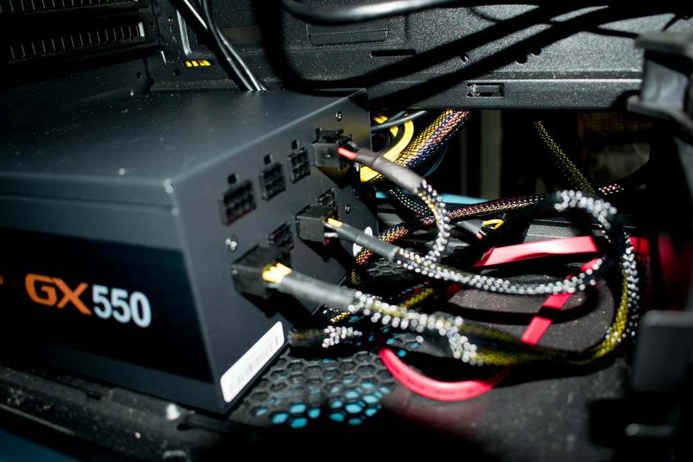 比如用普通电源的话,电脑机箱后面是这样乱的。没用的线都这样堆积。