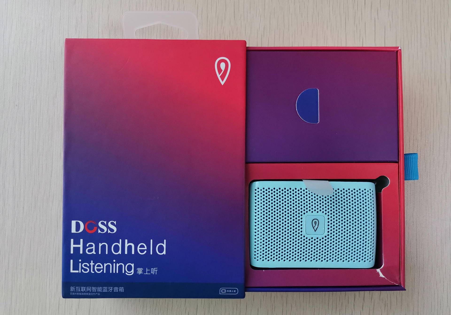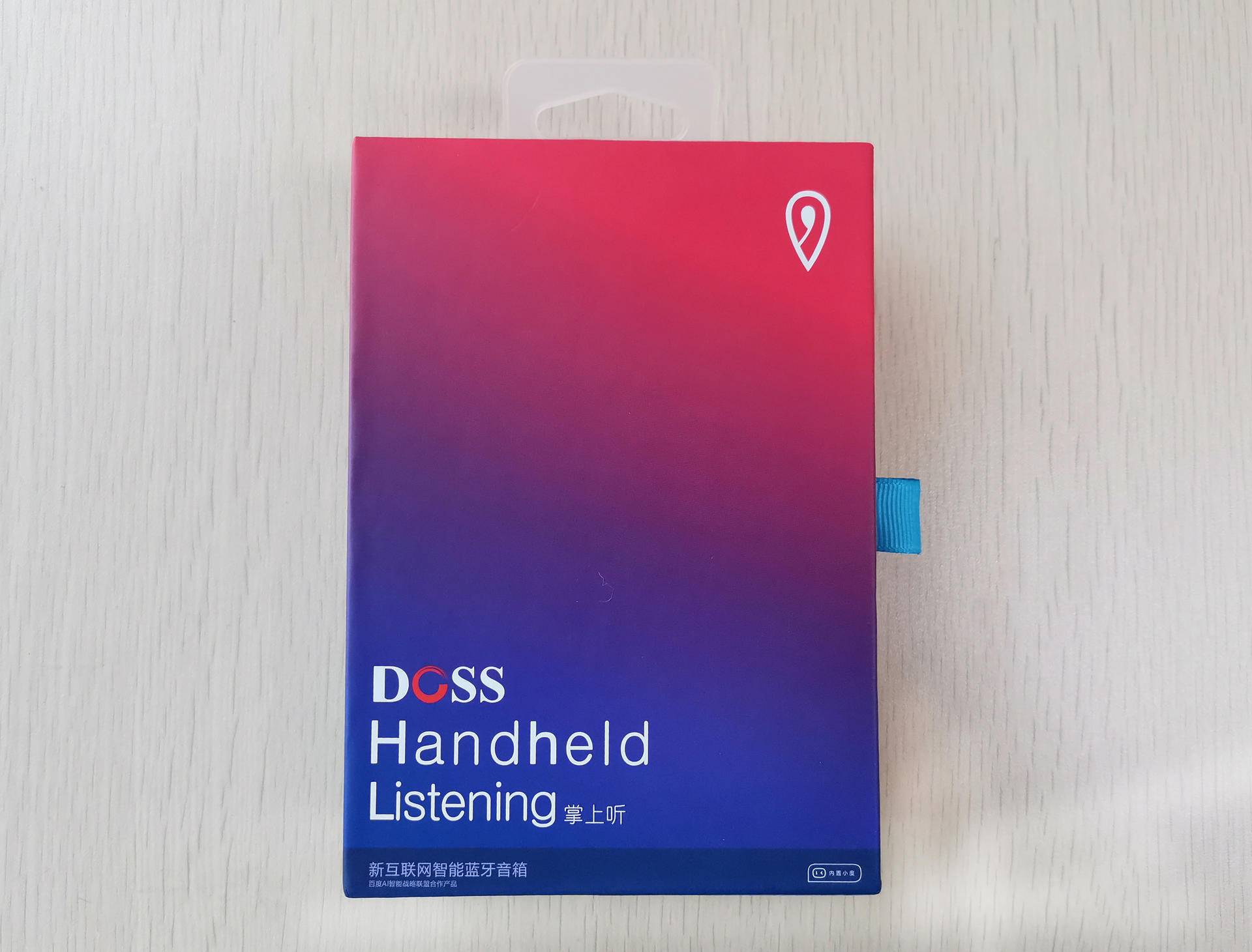 DOSS掌上听采用抽拉式抽屉设计,方便快速取出产品,DOSS掌上听共有5色可选(黑色、白色、蓝色、红色、粉色),因为喜欢《你看到的我是蓝色的》这首歌,就选择了蓝色。