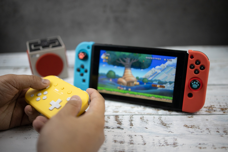 Switch 平台上,我测试了《新超级马力欧兄弟 U》、《马力欧赛车 8》和《塞尔达传说:梦见岛》,由于手柄的按键与原厂 JC 保持了高度一致性,所以上手不难,按键之间保持了适当的距离,所以双手拿捏操控也不会有明显的局促感。虽然这款手柄没有搭载真正的摇杆,但这十字形的数字摇杆用起来也是比较顺手的,它更适合用于玩儿一些 2D 类的游戏。