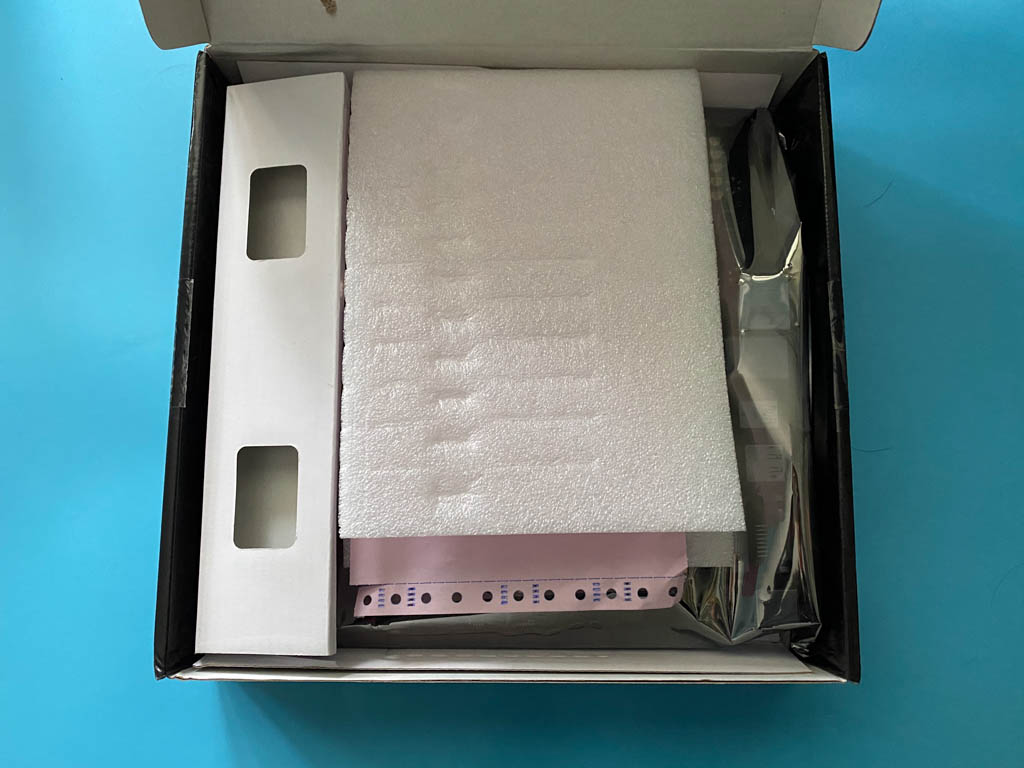 取出主板,里面还有个泡沫垫子,这个应该就是我的那块板子。这款终结者,是有个防尘马甲的,我觉得太碍事,后来终于忍不住给拿掉了。
