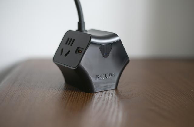 飞利浦摩天轮立体插座快充版由一个6面体结构设计,它的电源线有1.5米长,所以不管是墙体插座在什么位置都不会影响使用。并且它采用了