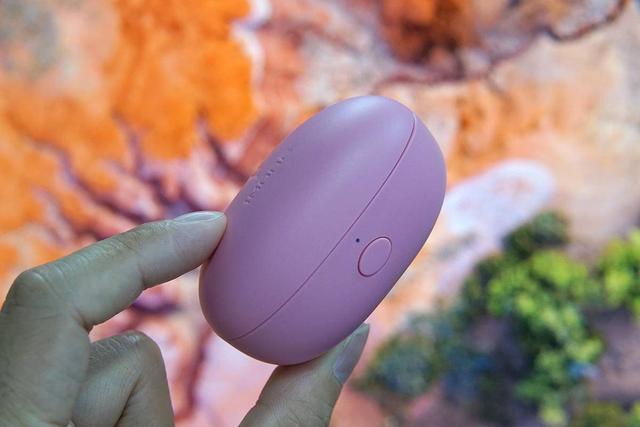 1MORE耳机的电池盒,造型很像一块圆润的鹅卵石,握持手感光滑舒适。轻按下方的按钮,即可打开。
