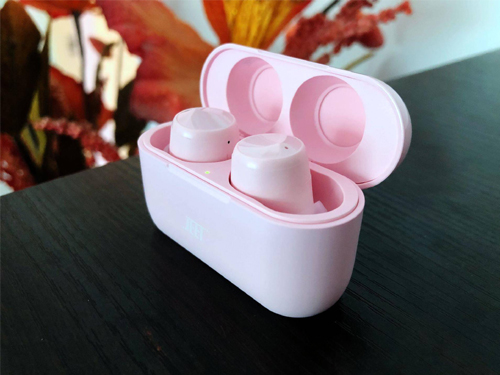 粉红色的机身,搭配白色透明的耳机帽,这个组合配色让耳机显得清爽靓丽。