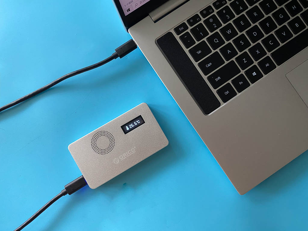 这个情况下,可以降温的移动硬盘盒就出现了,譬如这款ORICO的NMVe M.2 SSD硬盘盒,就是这样的产品。