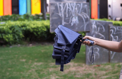 我是一个不会折叠雨伞的人,一是没那耐心,二是这玩意着实不好折,看一看我老婆那失了平整的伞就知道一定是我的作品。试一试90分这把折叠伞,三折的设计,意外的好折,拉平,一卷,好了,完美!