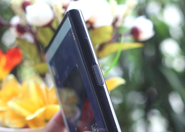 这一侧带有电容式的侧边指纹、音量加减按钮。