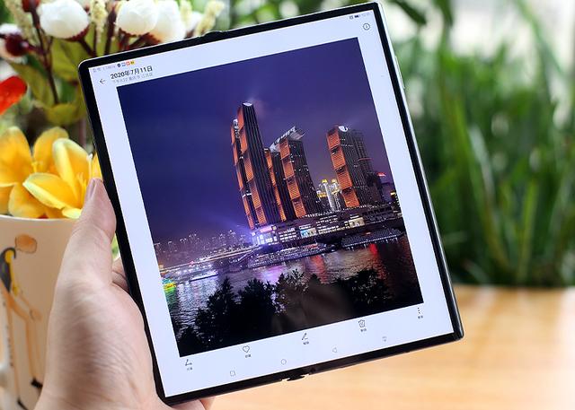 华为MateXs展开会变成一块8英寸的全面屏,屏幕分辨率为2480*2200,OLED柔性屏幕具有色彩鲜艳,颗粒精细,支持HDR,画面细节还是非常震撼。稍有缺陷的就是感觉铰链位置的那个地方的屏幕和两侧稍微有些小凸起,平整感不够完美,不过怎么说这都已经是此刻的科技巅峰,表现还是非常不错的。