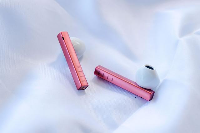 FIIL CC耳机主体是一个四方形的外观设计,而且棱线分明,设计感十足,而樱花粉配色的支撑杆是粉色金属材质,入耳的腔体则是白色塑料材质,和谐的色彩对比,让耳机不会过于单调,而且会给你一种铁树开花的感觉。