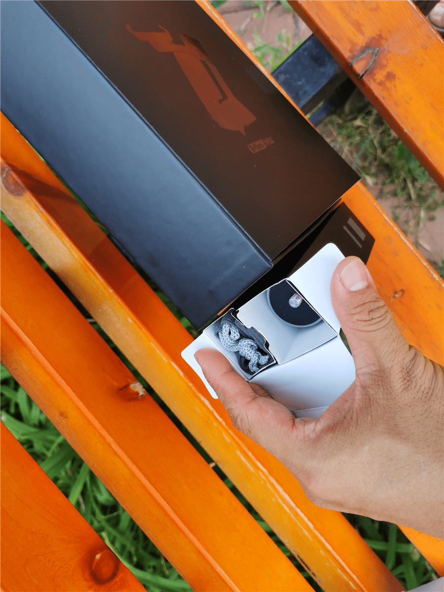 除了云台主机,包装中还有配套的说明书,产品卡、以及电源线和挂绳。而在底部小盒子中是赠送的三脚架和收纳袋。