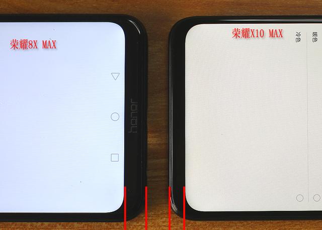 接下来简单对比对比手机的下巴,相比荣耀8X MAX来说,荣耀X10 Max屏幕下方的下巴设计要稍微窄一些,当然和目前价位更高的超窄下巴的手机款式相比就显得要普通不少。个人感觉大下巴让整个手机正面的颜值稍有下降。