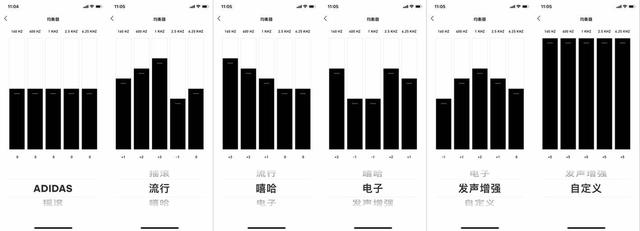ADIDAS HEADPHONES里面,还可以对耳机进行多段预置的EQ调音,当然还包括给发烧友准备的十段EQ自定义设置。其实默认的ADIDAS模式,已经校准的非常均衡了,对于大多数音乐爱好者来说,默认EQ即是最优设置。
