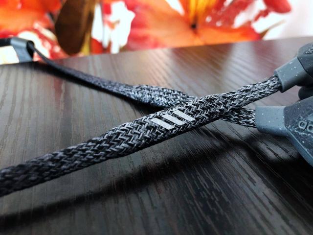 传统的尼龙耳机线材,在运动中会与皮肤产生摩擦的拉扯感,还会在跑步的颠簸中,与后颈产生碰撞,这些都是干扰运动心情的重要因素。而Adidas FWD-01的线材更换为更加亲肤的类棉材质,手感与ULTRA BOOST的鞋带类似,质量很轻,运动中感觉不到摩擦感,跑跳中与皮肤的碰撞也几乎降低到了最小,极大的改善了运动体验。